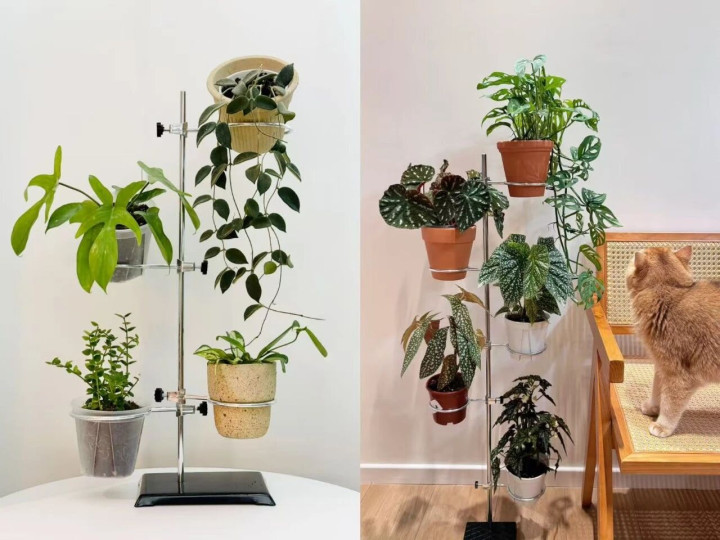 而且铁架台的模块化设计可以自由组合,不但可以根据需求调节高低和宽度,还可以根据家里情况购买不同高度的架子。