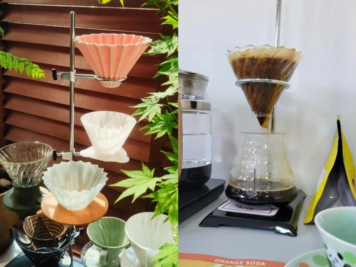 这实验室架台做个手冲支架刚刚好,我的各种咖啡滤杯也找到了家,别说还真合适。