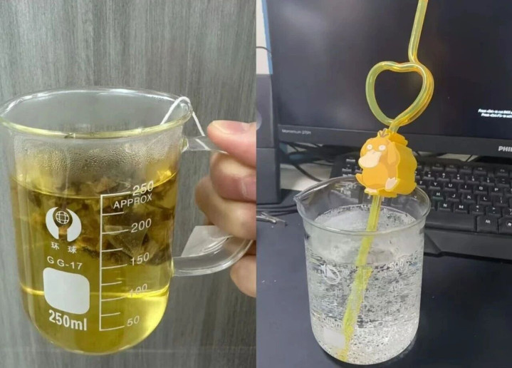 实验室的镂空玻璃试管,本用于过滤或反应,如今却成为年轻人手中的茶隔。