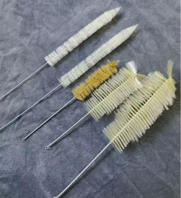因为是实验室用来刷各种试管的,所以型号和形状特别齐全,从细长直的试管刷到带弯头的烧杯刷,再到三角形的瓶刷,应有尽有。
